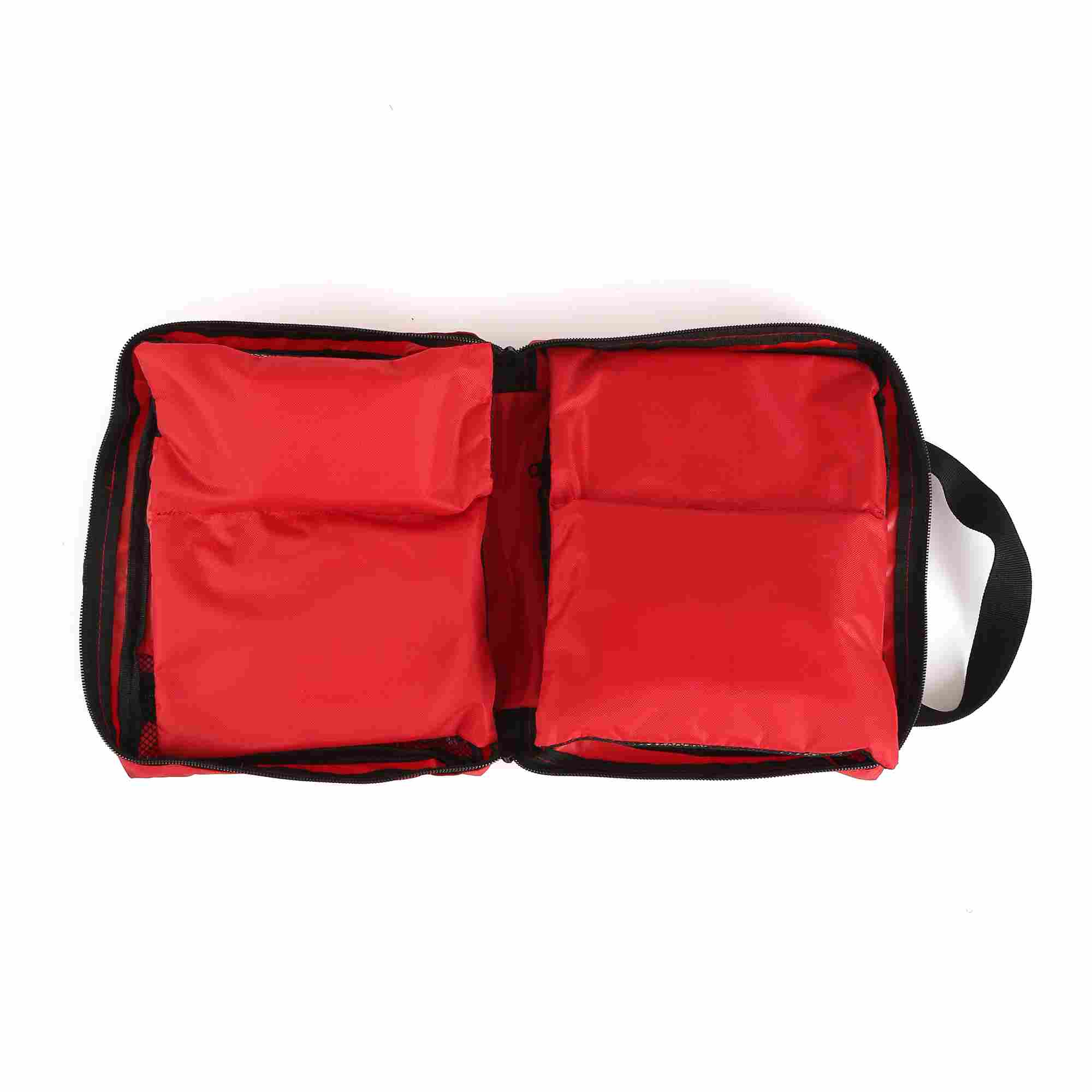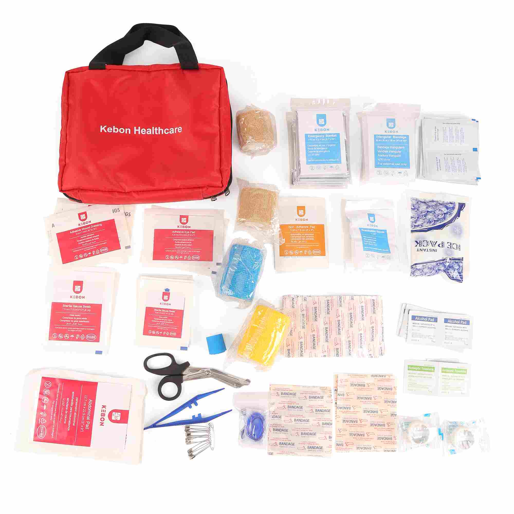 CategoryItems IncludedSterile DressingsGauze pads, sterile wound dressings, absorbent padsBandages & WrapsElastic bandage, triangle bandage, adhesive tapeWound CareMixed adhesive bandages, alcohol pads, cleaning wipesEmergency ToolsScissors, tweezers, safety pins, disposable glovesOther EssentialsInstant ice pack, medical tape, wound plaster sheets
